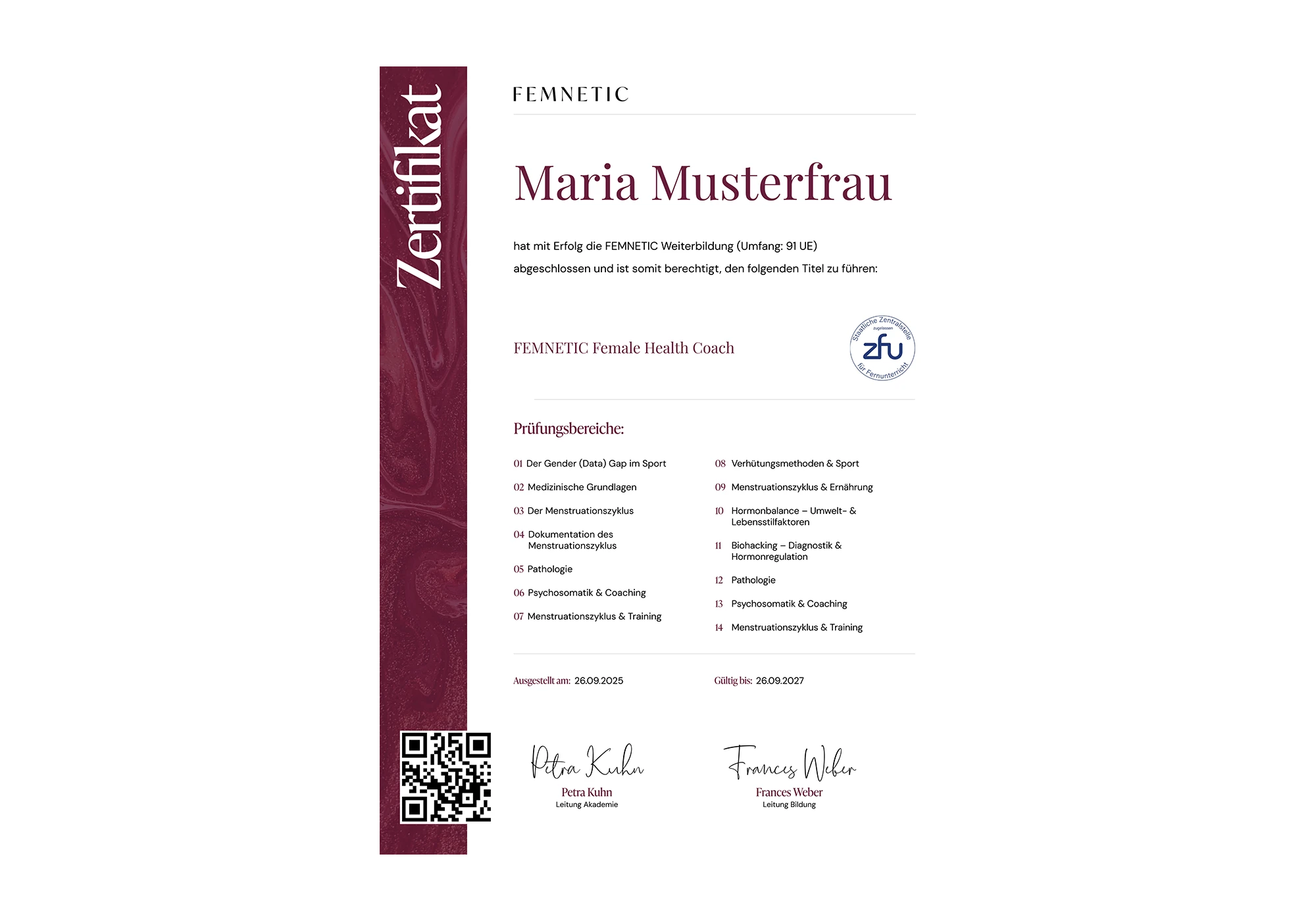 Werde Female Health Coach:in mit unserem staatlich zertifizierten und preisgekrönten Fernlehrgang.